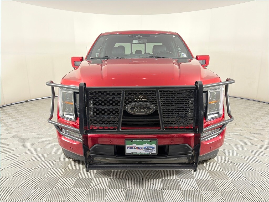 EQUIPMENT GROUP 701A HIGH Ford BlueCruise 1.0, forward sensing system, Active Park Assist 2.0, 360 Degree Camera, trailer reverse guidance, Radio: B&O Unleashed Sound System by Bang & Olufsen, HD Radio and 18 speakers including subwoofer, Pro Trailer Backup Assist & Pro Trailer Hitch Assist, Bed Utility Package, BoxLink, 4 premium locking cleats, LED Box Lighting, Tailgate Step w/Tailgate Work Surface, Power Tailgate, PLATINUM BLACK APPEARANCE Dark-Tinted Taillamps, Black Exterior Badging, Wheels: 20 Gloss Black Painted Aluminum, Black Belt Moldings, Unique Hood & Grille w/Black Accent, Black Front Tow Hooks, 2 two hooks, Body-Color Door Handles & Mirror Caps, Power-Deployable Running Boards w/Black Accent, Dark Interior Appliques, Black Tailgate Applique, Black Taillamp Bezels, ENGINE: 3.5L V6 ECOBOOST, TOUGH BED SPRAY-IN BEDLINER, ELECTRONIC LOCKING W/3.31 AXLE RATIO, TRANSMISSION: ELECTRONIC 10-SPEED AUTOMATIC selectable drive modes: normal, ECO, sport, tow/haul, slippery, deep snow/sand and mud/rut (STD). Ford Platinum with Rapid Red Metallic Tinted Clearcoat exterior and Black interior features a V6 Cylinder Engine with 400 HP at 6000 RPM*.