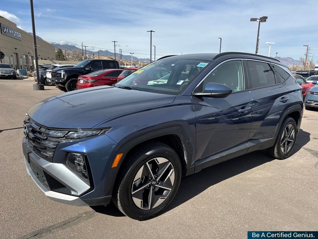 Certified. Atlantis Blue 2025 Hyundai Tucson SEL AWD 8-Speed Automatic with SHIFTRONIC 2.5L I4 DGI DOHC 16V LEV3-SULEV30 187hp 24/30 City/Highway MPG Hyundai Certified Used Vehicles Details: